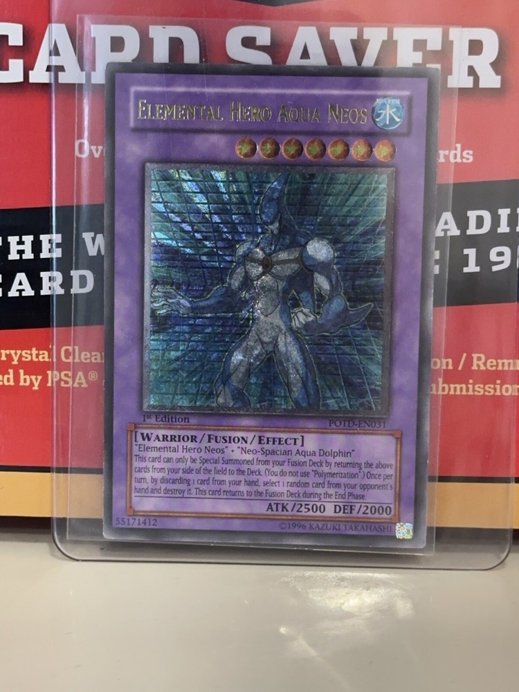 | Features | 1st Edition, Yugioh TCG, Konami, Elemental Hero Aqua Neos, Power of The Duelist, POTD-EN031, Ultimate Rare, Excellent Condition, Released in 2006, Vintage Sports Cards, Reprint |