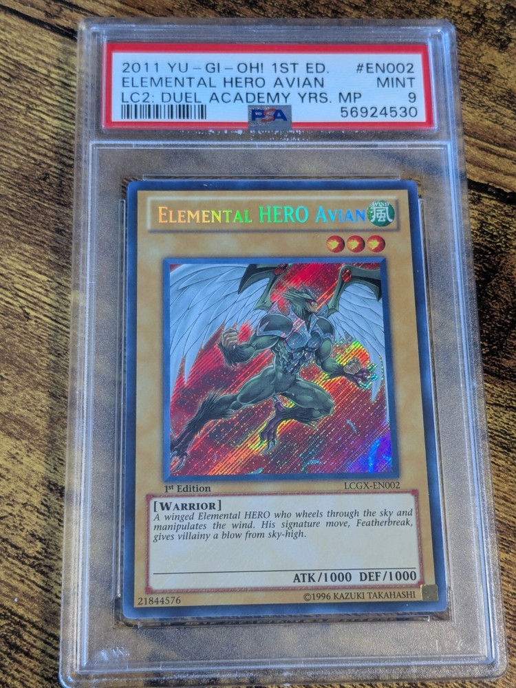 yugioh legendary collection 2: academy years mega pack 2011 lcgx-en002 elemental hero avian 1st edition secret rare this card has been professionally graded by PSA to be MINT...