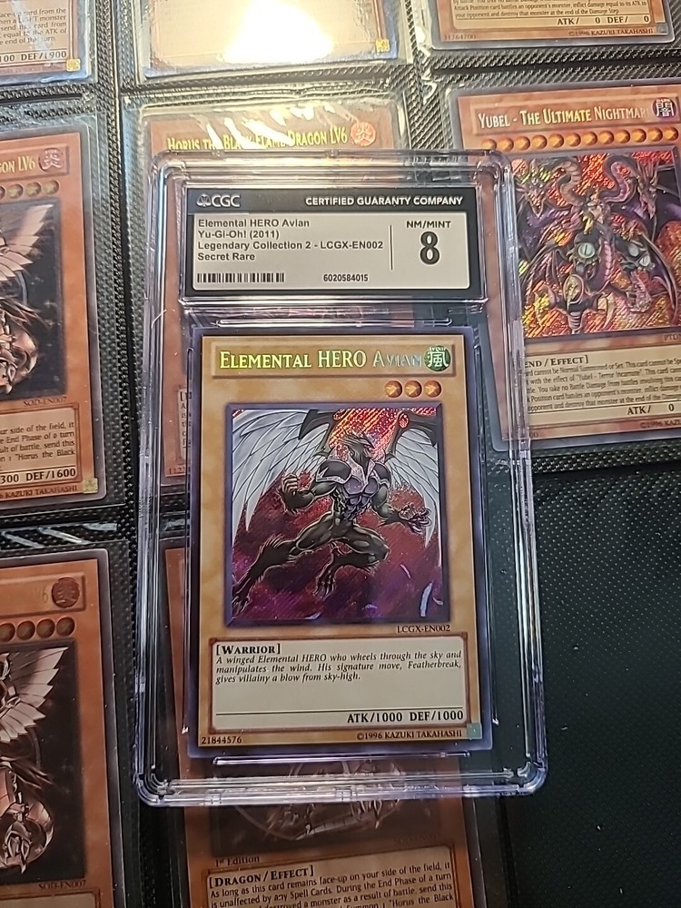 This rare and special Yugioh card is a must-have for any collector. The Elemental HERO Avian LCGX-EN002 Secret Rare 1st Ed NM 2011 CGC 8 is a Basic Monster card with an Angel creature type and a BREAK speciality. The card features a foil finish and is made of aluminum material. The card is in excellent condition, with no autograph or age level restrictions. It is a 1st edition card from the Lcgx set and is in English language. The card size is Japanese and it is suitable for ages 4 and up. This card is perfect for any Yu-Gi-Oh! TCG fan and collector.