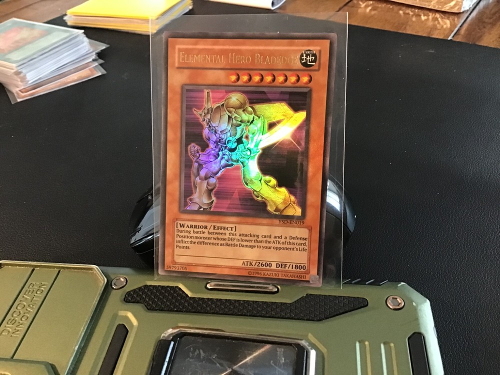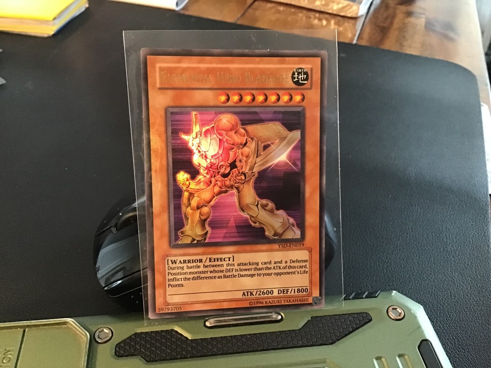 The Yugioh Elemental HERO Bladedge YSD-EN019 Ultra Rare card is a sought-after collectible in the Yu-Gi-Oh! TCG. Manufactured in 1996, this English-language card features a holo finish and is made of durable card stock. As part of the Elemental Hero series, Bladedge is a standard-sized monster card that is highly valued by collectors and players alike for its rarity and unique abilities in the game. This card is a must-have for any serious Yugioh enthusiast looking to expand their collection with a piece of history.