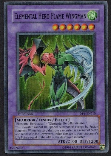 YuGiOh E HERO Flame Wingman DP1-EN010 Super Rare 1st Ed VLP
