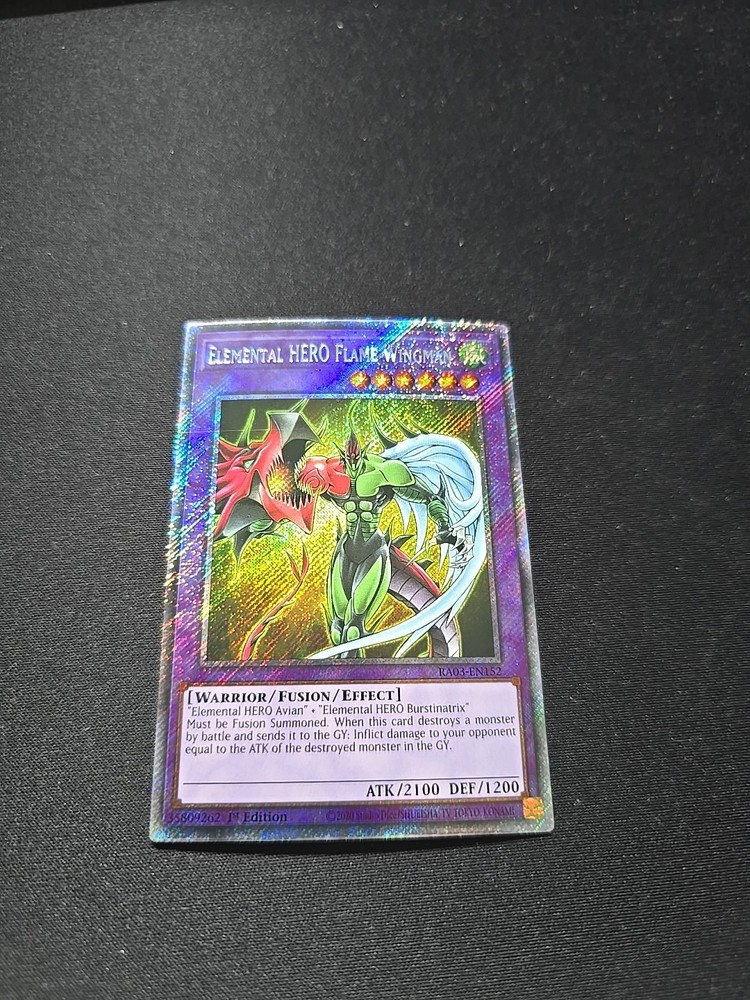 Yugioh! Elemental HERO Flame Wingman - RA03-EN152 - Platinum Secret Rare 1st PSR. Condition is Ungraded. Shipped with Canada Post Lettermail.