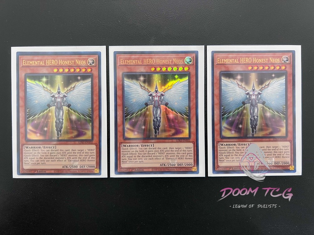 This Yu-Gi-Oh! TCG card is the perfect addition to any HERO Deck. With its powerful Warrior and Effect Monster Type, and Light Attribute, it brings a new level of strategy to the game. The card is part of the Legendary Duelists: Season 3 set and is an Ultra Rare 1st Edition with a foil finish. The card name is Elemental HERO Honest Neos and its card number is LDS3-EN102. It is in near mint or better condition and is suitable for players aged 6+. The card is in English language and was manufactured by Konami. It is a great collectible for fans of the Yu-Gi-Oh! franchise and is sure to impress.