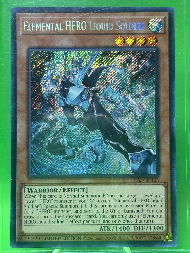 The product is a Yu-Gi-Oh! TCG card called Elemental HERO Liquid Soldier, which is considered an Ultra Rare card. It is a 1st Edition card from the Limited Edition set LDS3-EN103. This collectible card is in near mint or better condition and is ungraded. It offers unique features and is a sought-after addition for fans and collectors of the Yu-Gi-Oh! franchise.
