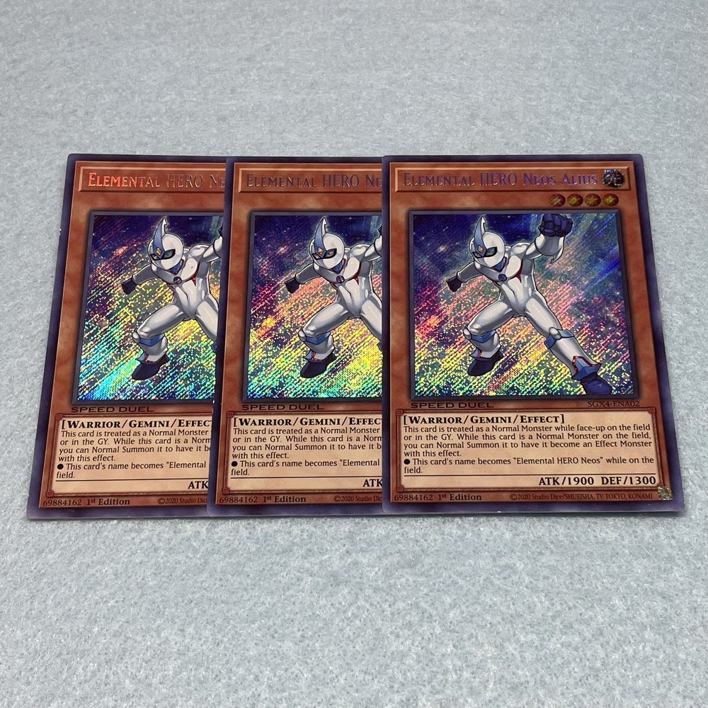 You will receive three copies of the card pictured. These cards have not been played-with, but the cards from this set (SGX4) have some edgewear and/or wear on the back which seems to have been caused during the manufacturing process. Please do not purchase if this is an issue.