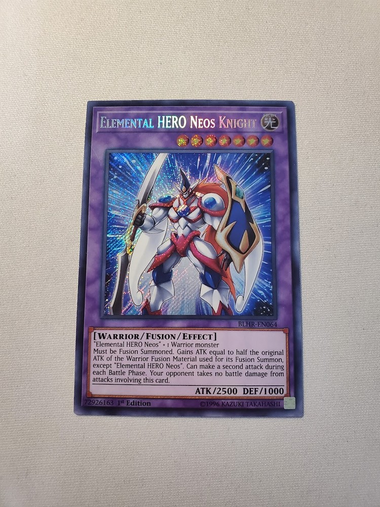 Free eBay listing template designed by dewiso.com Yugioh - Elemental HERO Neos Knight BLHR-EN064 NM 1st ed Secret Rare Product This a Yugioh Product that is being sold! Condition is exactly as pointed out in title. For you're reference: NM: Near Mint VLP: Very Lightly Played LP: Lightly Played MP: Moderately Played HP: Heavily Played Shipping This listing will be shipped via card sleeve/penny sleeve and a top loader via letter mail. If you are purchasing an order of over $150 I will provide shipping with tracking free! Contact If you have any questions whether it be more pictures of the back or clarification on an order please contact me! We will do everything to Help! Also if you have multiple items or even have specific things you are looking for, reach out and we might just have it! There are no refunds, items are final sale! If the item has been incorrectly described or wrongly sent, please send images and we will sort it out right away! If the product has X2 or X3, it means it will either come with 2 of the same card or 3 of the same card. Be sure to always check the title of the listing! Great quality products that we ship across North America! Be sure to leave a review when you receive the item! Collection and Bulk Pokemon/Yugioh Purchases If you have any collections or bulk cards that you wish to sell please contact me and send pictures of what you're looking to sell! Rates: Contact me for rates! Reminder: I am looking to make profit when buying and selling, so please when reaching out realize that we both have to profit off the transaction!