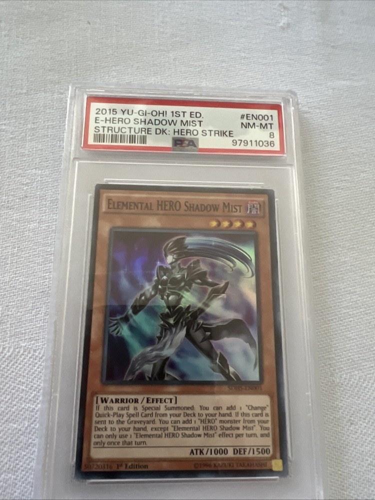 This Yu-Gi-Oh! TCG card is a 1st ed Super Rare PSA 8 Elemental HERO Shadow Mist. With a rarity of Super Rare, this card is a must-have for any collector of CCG individual cards. The card name is clearly stated for easy identification and it is perfect for those who are looking to complete their set. Add this card to your collection today and enjoy the thrill of owning a rare and sought-after card. It is perfect for both beginners and experienced collectors alike. Don't miss out on the opportunity to own this incredible card!