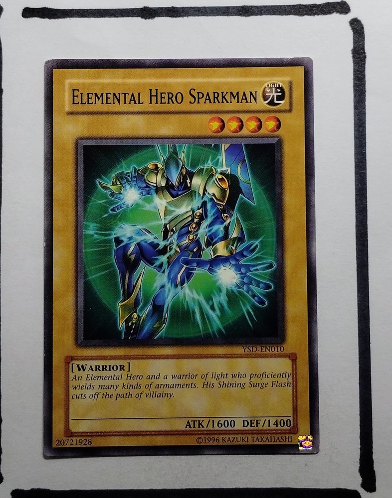 Yugioh Elemental HERO Sparkman YSD-EN010 Unlimited Near Mint This card is in Near Mint condition. Common card from the Starter Deck 2006 set.