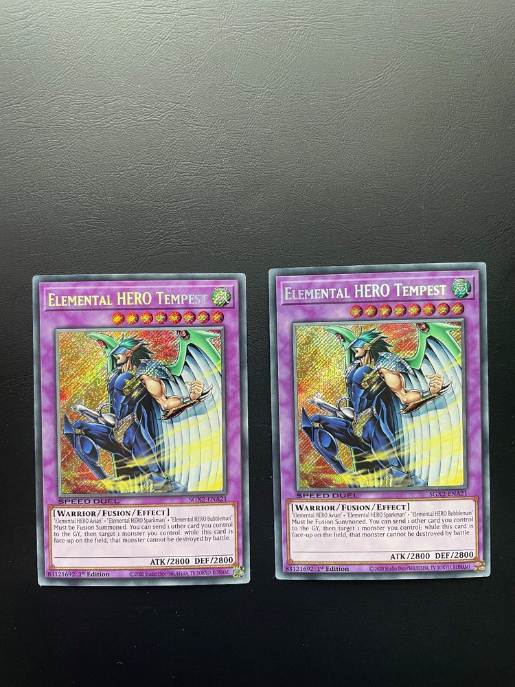 Yugioh E HERO Tempest SGX2-ENA21 Secret Rare 1st Ed LP X2