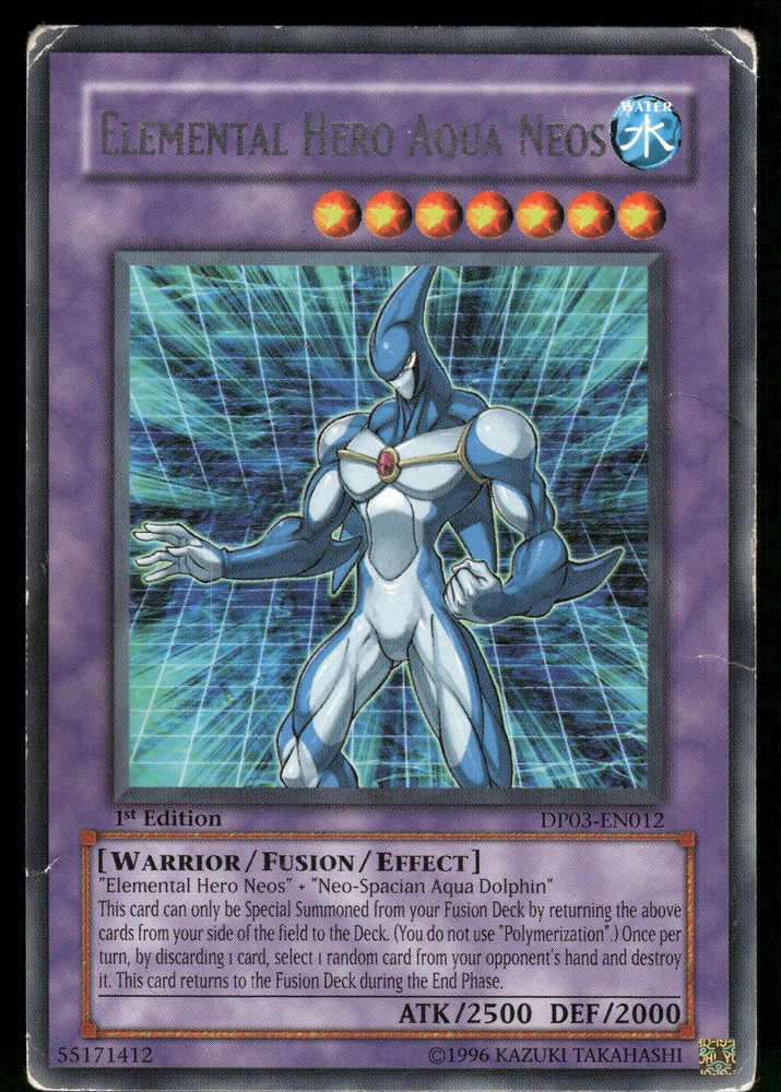 Elemental Hero Aqua Neos DP03-EN012 Yugioh! Duelist Pack 3: Jaden Yuki 2 Rare Yugioh! TCG. If multiple cards are listed, you may not receive the exact one in the photos. All copies are in the same condition. Condition is as shown. Please feel free ask if you'd like to see more photos! All card orders packaged with care using a penny sleeve, top loader and a team bag. Singles up to $20 will be shipped in a PWE, $20+ will be shipped in a Bubble Mailer, anything fragile/sealed (depending on the product) will be shipped in a box. All orders are shipped out within 24 hours.