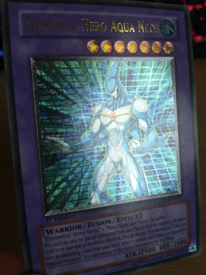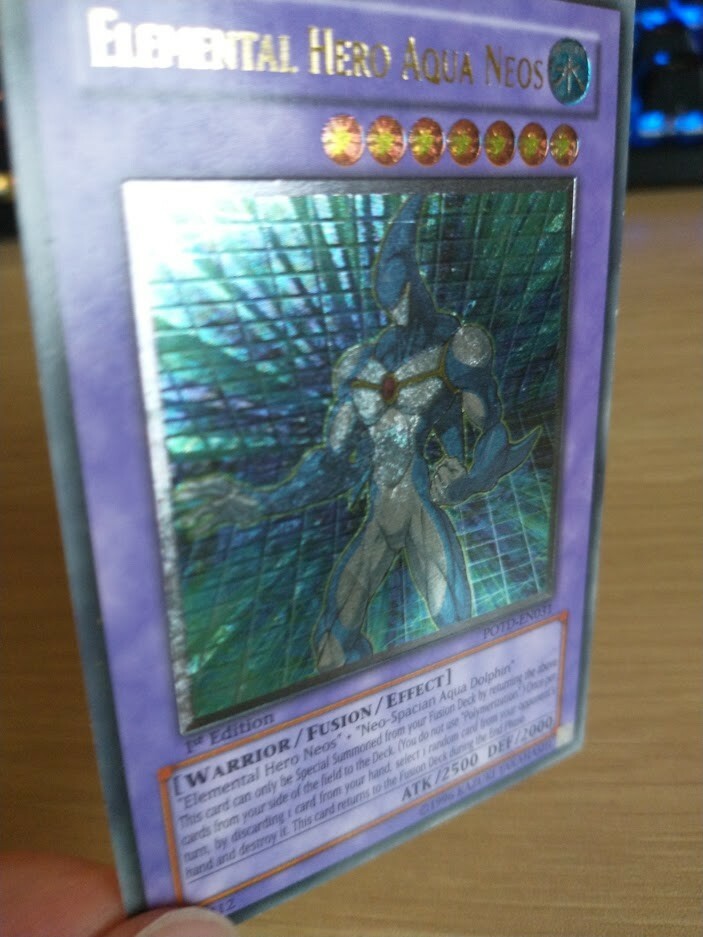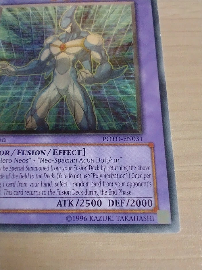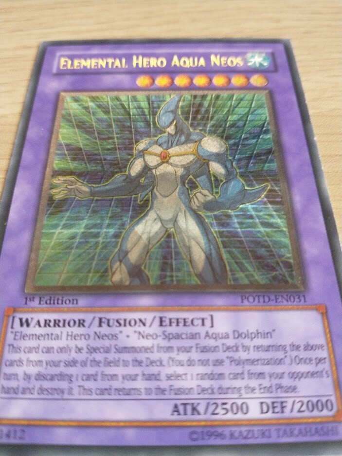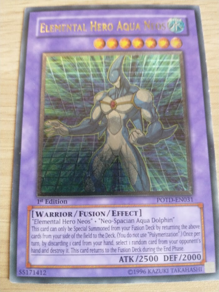 | Features | 1st Edition, Yugioh TCG, Konami, Elemental Hero Aqua Neos, Power of The Duelist, POTD-EN031, Ultimate Rare, Excellent Condition, Released in 2006 |