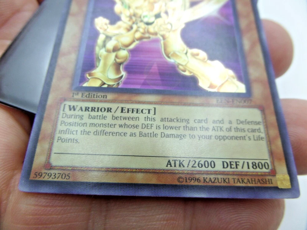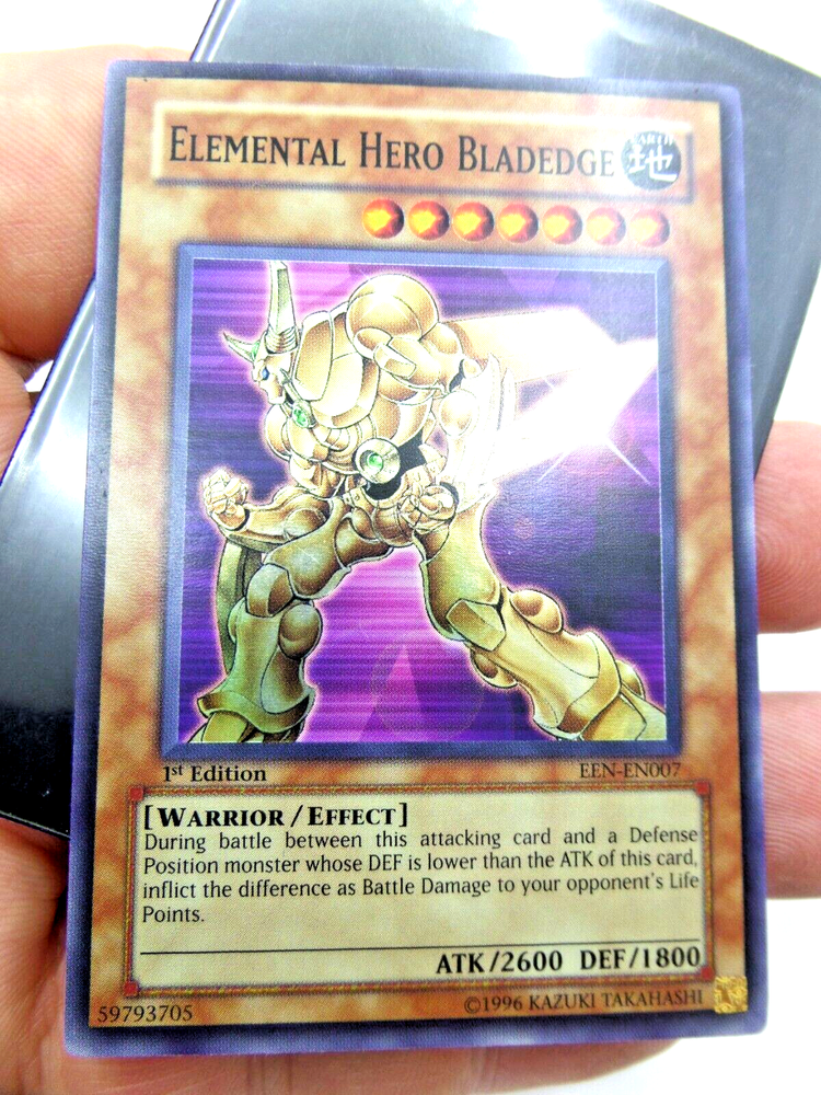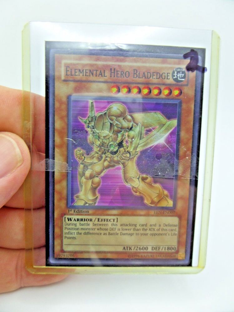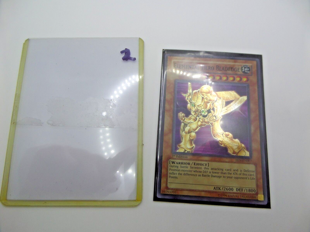 1 = Yugioh Elemental Hero Bladedge 1st Edition EEN-EN007 Elemental Energy Card. (#2) **CARDS ARE NOT GRADED or THOROUGHLY CHECKED FOR SCRATCHES, SCUFFS, BENT ENDS, ETC - PLEASE SEE PICTURES** (We can take 1-5 pictures for you if needed, please just ask us through eBay messenger) Card looks like its in fairly good shape, but we are NOT card experts, So please check out the pictures on this card Yourself. 1st edition, 1996 Kazuki Takahashi/ Konami Trading Card Game. Card is in two sleeves. Came out of an Estate Sale from a collector. This card has scuffs, scratches, bent ends, other damage, etc. ***ALL CARDS ARE SOLD AS-IS WHERE IS, NO REFUNDS, NO RETURNS, NOT GRADED, COULD HAVE DAMAGE, YOU'RE TAKING FULL RISK.*** -----> WE WILL BUBBLE WRAP THIS FOR SAFE ARRIVAL! <----- ____________________ - Shipping is based on your location, and if it's over $150.00 there will be a signature required, and an signature fee is added to the shipping cost, this includes insurance on the package if over $100.00. - All package(s) are measured, weighed and put in correctly in eBay for actual shipping costs - these are what they charge, not us (plus eBay takes 2% of shipping costs from us) . Questions? Email Us! Thank you for visiting Surf City Picker eBay Store. ____________ We do offer returns on this item IF something isn't working like from factory on MOST ITEMS WE SELL. This is from 14-Days from time received/delivered (NOT purchase date) . Buyer must pay shipping costs to return item as stated per eBay listing rules. We Do Put Warranty Stickers on Certain Items and Custom Mark Them to Ensure No Switch-A-Roos.