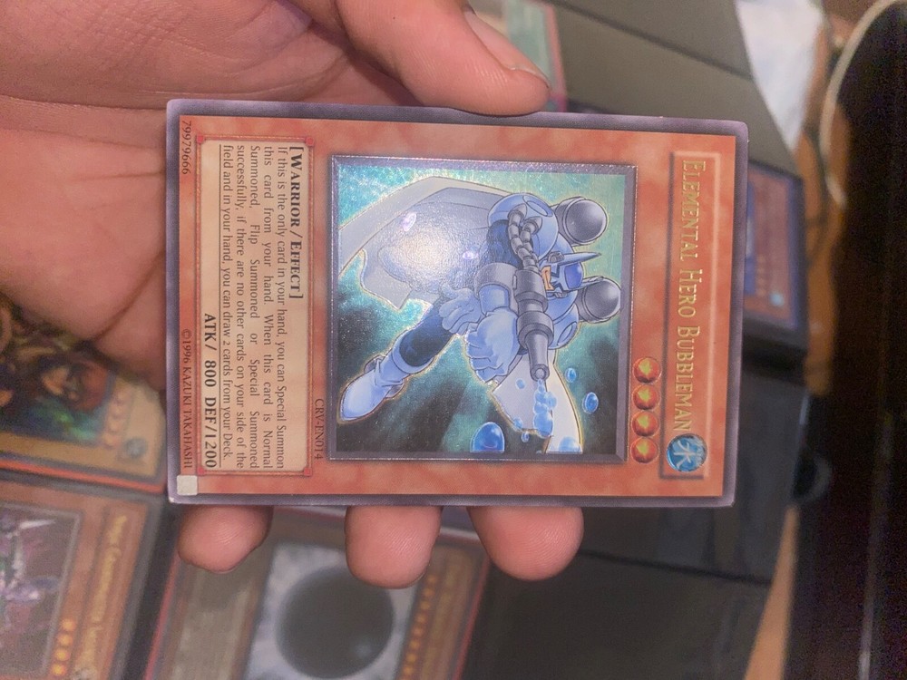 Yugioh: Elemental Hero Bubbleman - CRV-EN014 - Ultimate Rare - Unlimited - NM-LP. If you would like to see videos I could send them via email...