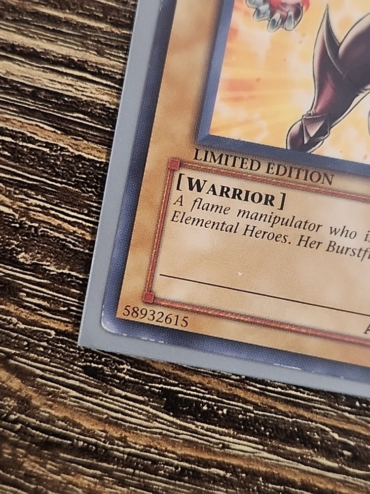 This limited edition Yugioh Elemental Hero Burstinatrix MP card is a must-have for any collector or fan of the popular trading card game. Featuring stunning artwork by 5ban Graphics and an authentic autograph verified by Beckett Authentication Services, this Japanese-sized foil card is a true gem. This artifact card is perfect for players and collectors alike. It showcases the black-colored Angel Monster Type and the iconic character Aayla Secura. This is a moderately played (Very good) card. Don't miss your chance to add this exquisite card to your collection! Sold as is. Please refer to pictures or ask for more.