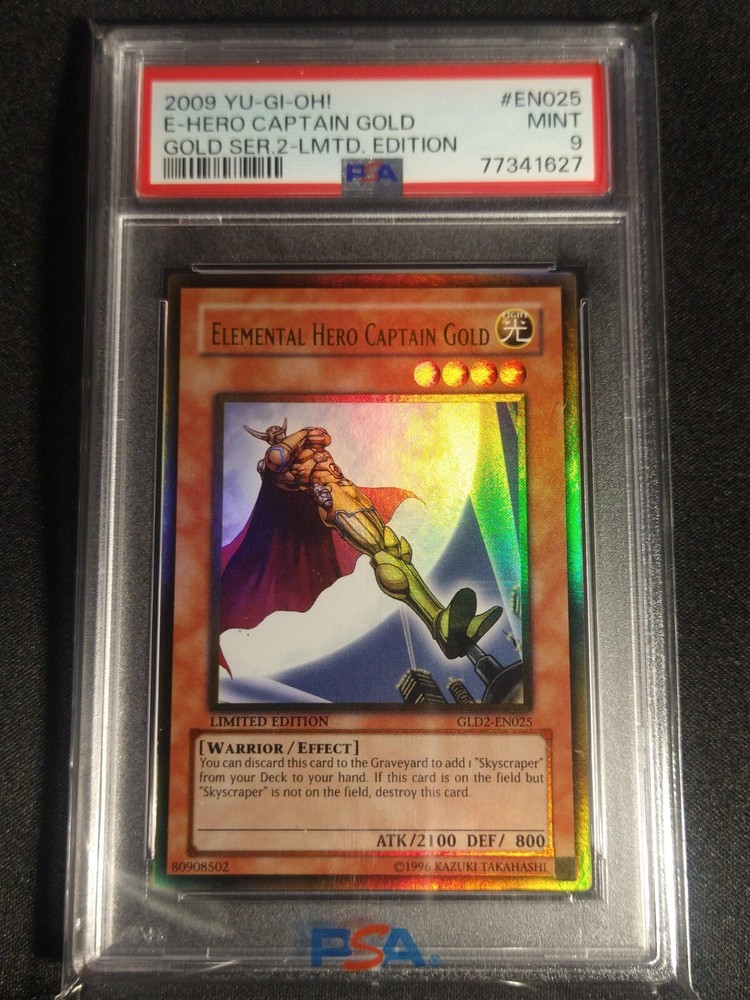 Yugioh - Elemental Hero Captain Gold GLD2-EN025 Limited Gold Rare PSA 9 MINT...