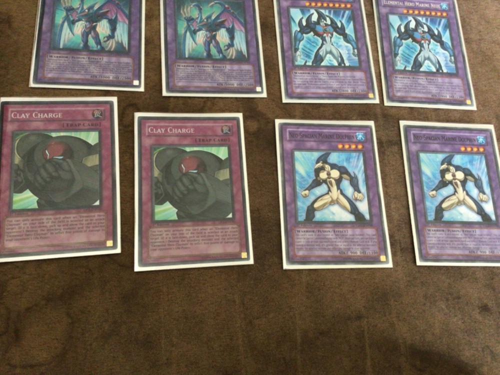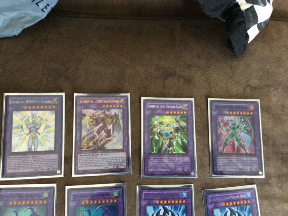 I am selling yugioh Elemental Hero Cards including several 1st edition fusion cards. Collection includes elemental hero the shining, elemental hero grandmerge 1st edition, elemental hero thundergiant, elemental hero shining phoenix enforcer 1st edition, 2x elemental hero storm neos, 2x elemental hero marine neos 1st edition and 2x 1st edition clay charge and neo spacian marine dolphin!