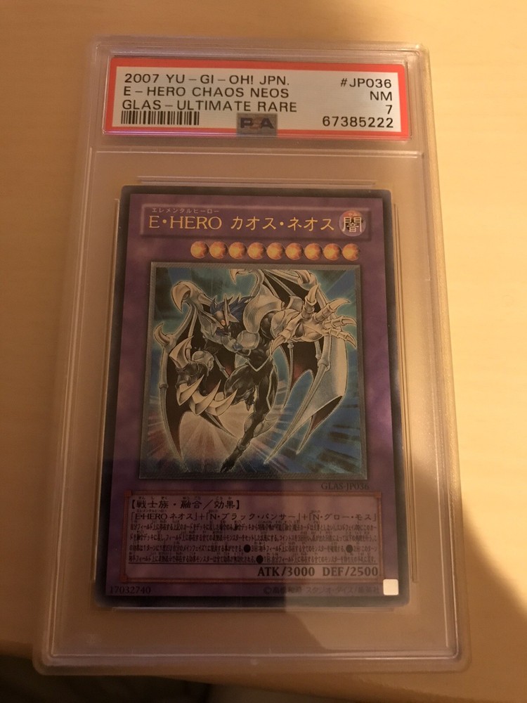 Yugioh Elemental Hero Chaos Neos GLAS-JP036 Ultimate Rare (PSA 7).