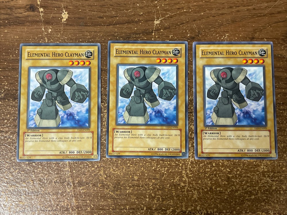 This listing is for 3x Elemental Hero Clayman (2x first edition 1x unlimited edition) Set: YSD-EN009 Condition: Lightly Played Shipping and Handling: I will ship within 2 business day of receiving a c...