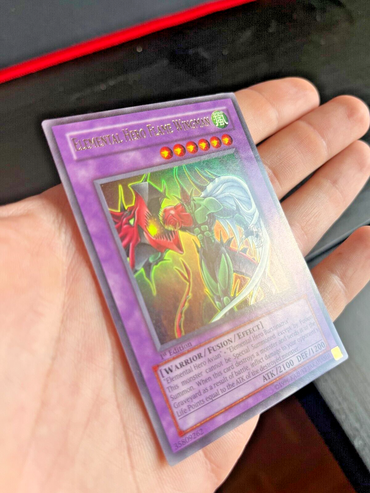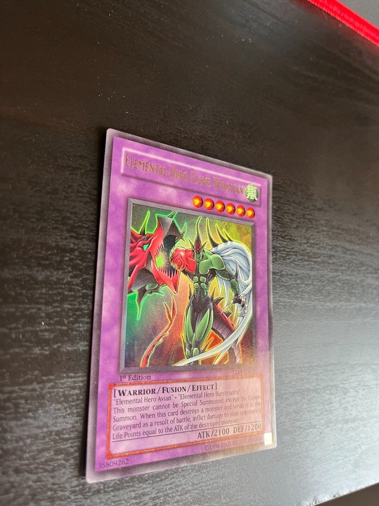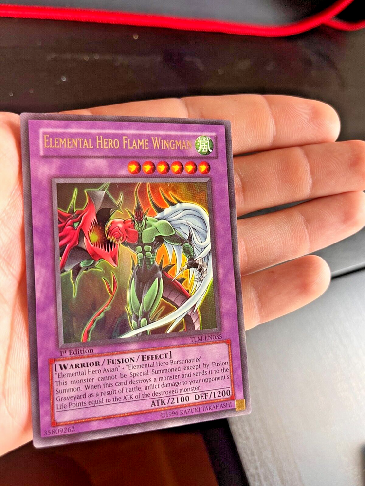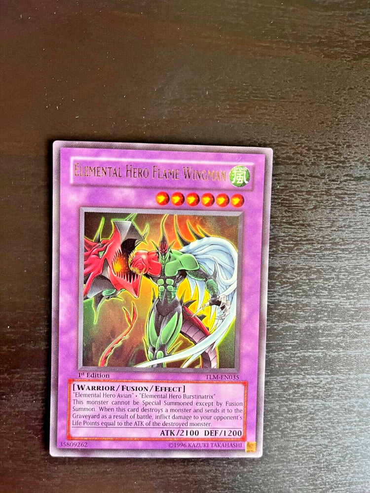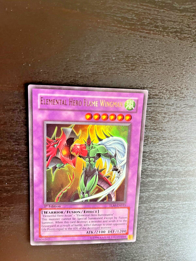 The card you will be receiving is the card in the photo and 100% authentic . Ultimate Rare - Elemental Hero Flame Wingman - TLM-EN035 - 1st ed. LP