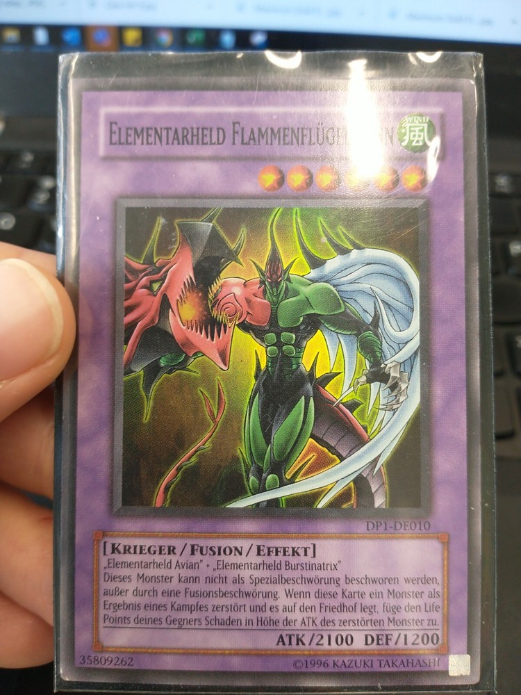 This listing is for one E hero Flame Wingman Super Rare card. it is in LP condition and is in German