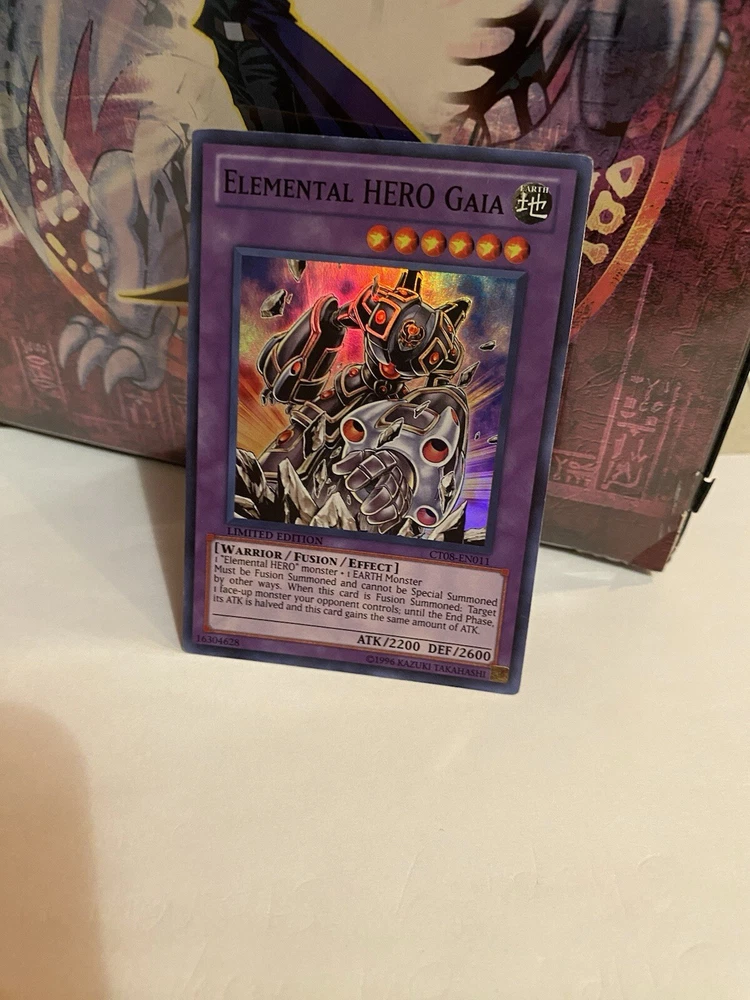 Yugioh - Elemental Hero Gaia - TCG - Konami -Collectors Item -Good to Great condition Secure Fast Shipping This rare and highly sought-after card is perfect for any Yu-Gi-Oh! TCG collector or player. Featuring the powerful Elemental Hero Gaia, this card is sure to give you an edge in battle. With its English language and impressive card quality, you can be confident that you are getting a top-notch product from Konami.