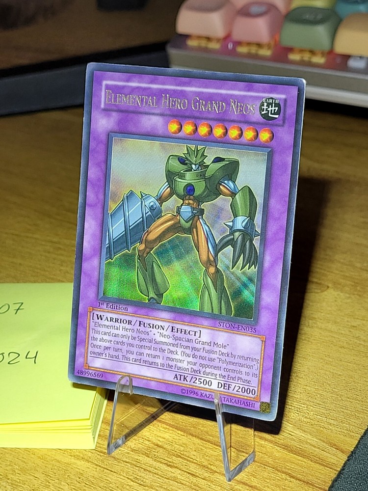 Selling Yugioh Card: Elemental Hero Grand Neos (STON-EN035), Ultra Rare rarity , 1st Edition, VLP condition (please reference the photos as I am not an expert or a card grader). Super fast and secure shipping provided, shipping guaranteed within 2 business days of purchase! I want you to purchase with confidence, so please feel free to contact me with any questions regarding the cards. Check out my other listings for more Yugioh cards at fair prices.