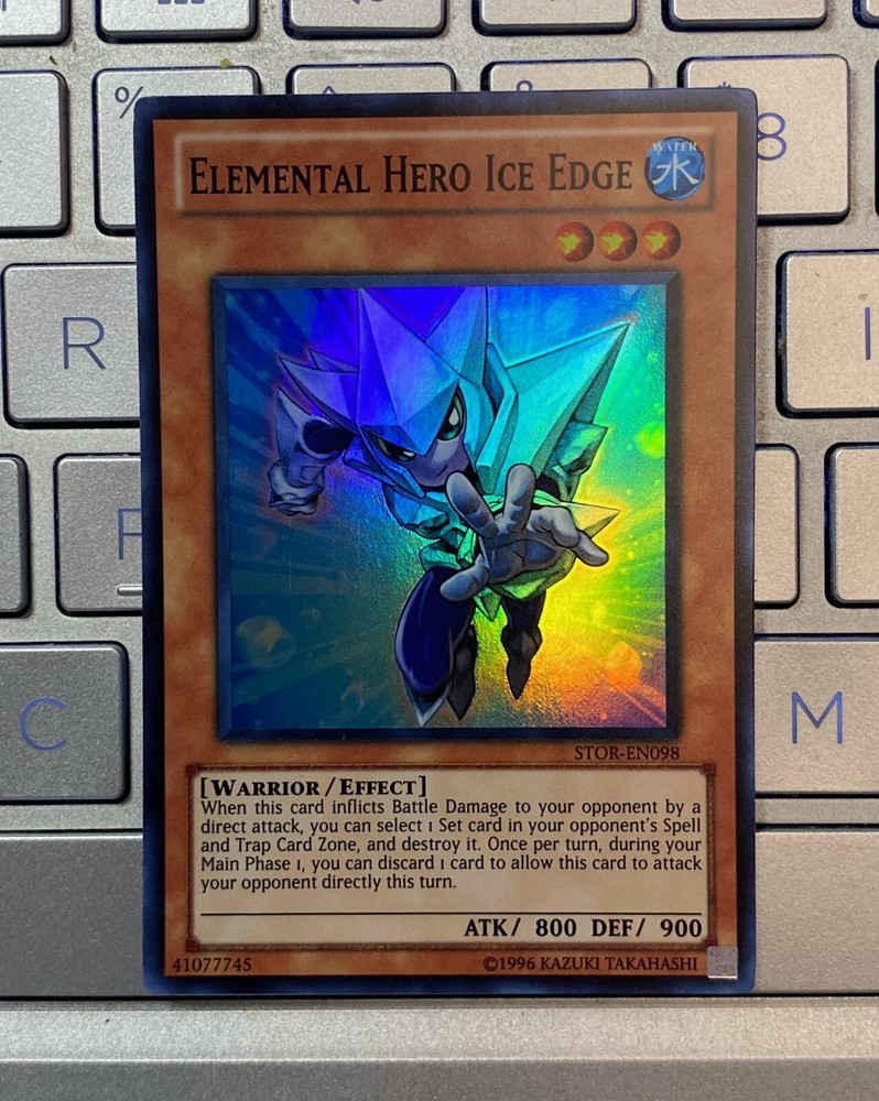 Yugioh Elemental Hero Ice Edge STOR-EN098 Super Rare Holo LP/NM Up g r a d e or Complete Your Collection! We make every attempt to ship out your stuff as soon as possible and get everything shipped out within 1 business days. Thanks for looking. We do combine on the shipping; just add to a cart and once done with all your purchases, checkout by clicking on the shopping cart icon at the top right of your screen. The shipping discounts and combined shipping are already set up for you.