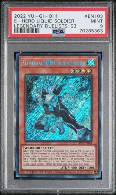 Elemental Hero Liquid Soldier PSA 9 Also will include a free random sealed Booster Pack!...