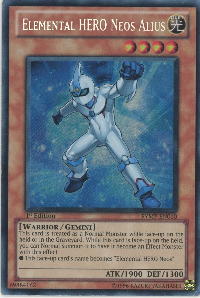 Yugioh Elemental Hero Neos Alius RYMP-EN010 Secret Rare 1st Edition LP You can find more Yu-Gi-Oh cards of all value and rarity in our other listings All cards are in excellent condition unless stated otherwise and the photos are of cards we own but may not be the exact card you receive due to the quantities listed.