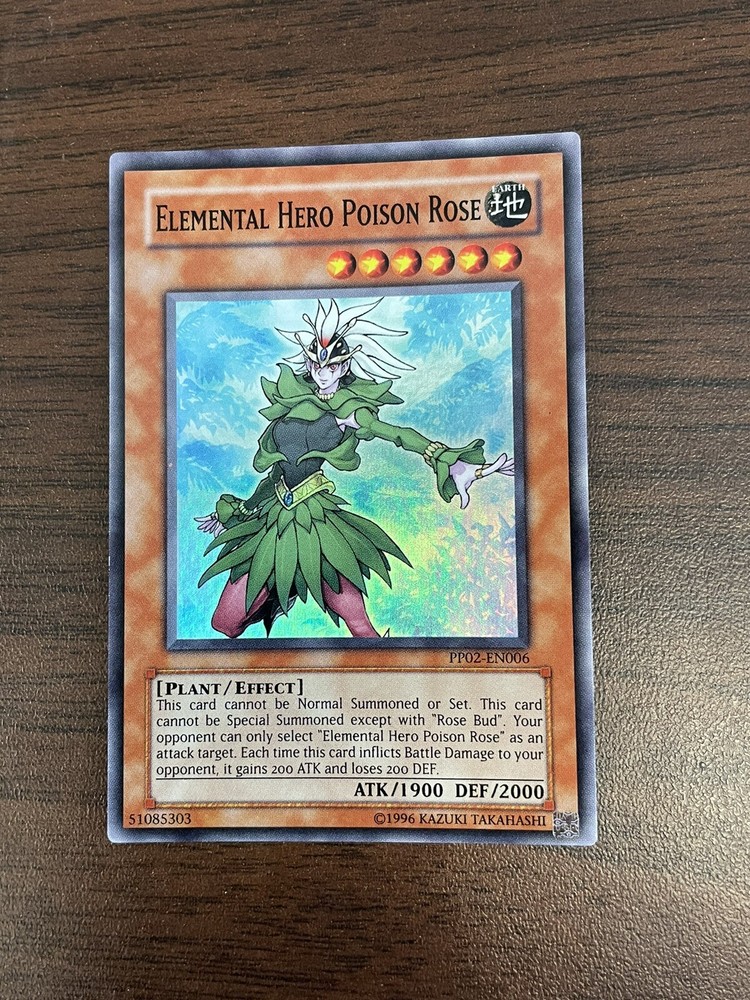 Yugioh Elemental Hero Poison Rose PP02-EN006 Super Rare. Condition is Ungraded. Shipped with eBay Standard Envelope for Eligible Items up to $20.