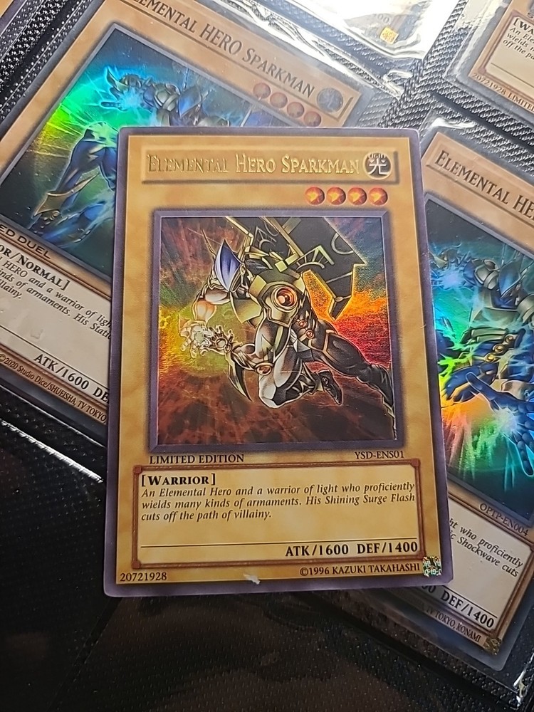 This rare and limited edition Yugioh card features the Elemental Hero Sparkman character from the 2006 set. The card is made of aluminum and has a foil finish, making it a valuable addition to any collection. It is autographed by 5ban Graphics and has been authenticated by Beckett Authentication Services (BAS). The card is a 1st edition and has a stage of Basic. The card is in the English language and has a card size that is Japanese. It is a 10000 Secret Rare card and has a rarity of 1st Edition. The card is an Artifact type and has a creature/monster type of Angel. The card is a great choice for collectors and players alike and has been well-maintained since its year of manufacture in 1990.