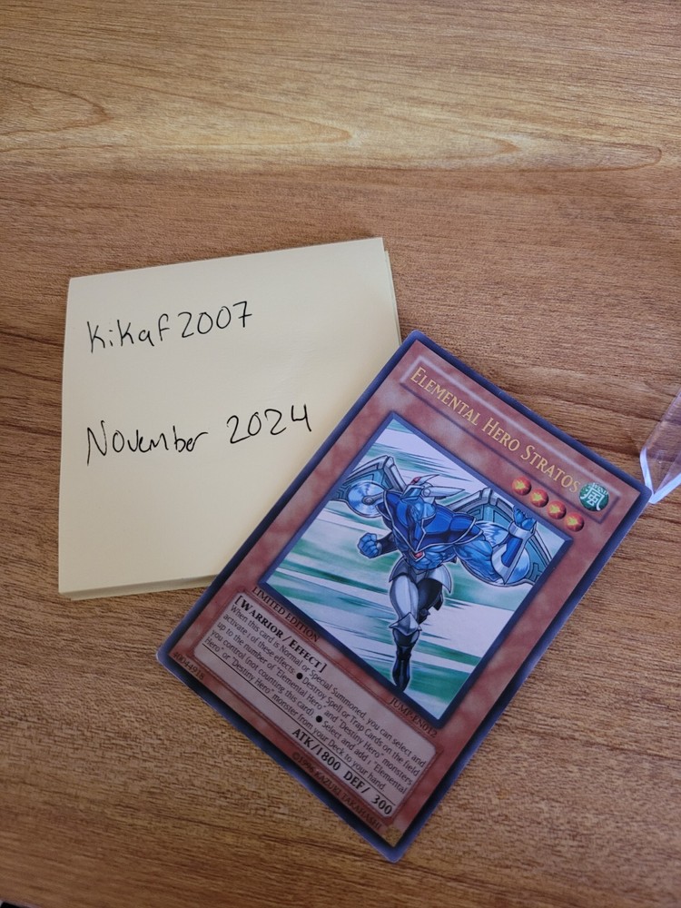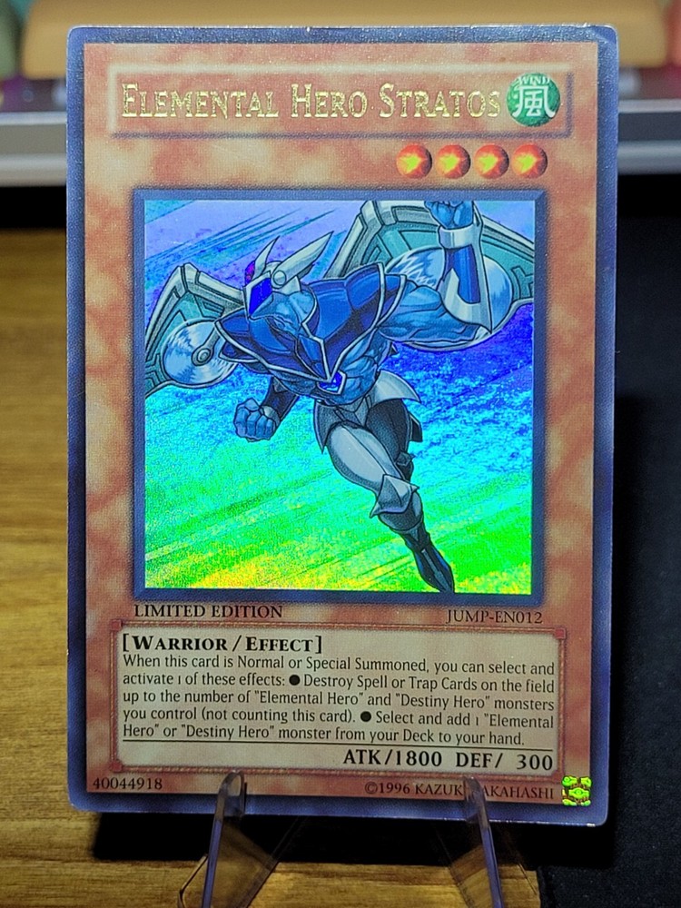Selling Yugioh Card: Elemental Hero Stratos (JUMP-EN012), Ultra Rare rarity, Limited Edition, LP condition (please reference the photos as I am not an expert or a card grader). Super fast and secure shipping provided, shipping guaranteed within 2 business days of purchase! I want you to purchase with confidence, so please feel free to contact me with any questions regarding the cards. Check out my other listings for more Yugioh cards at fair prices.