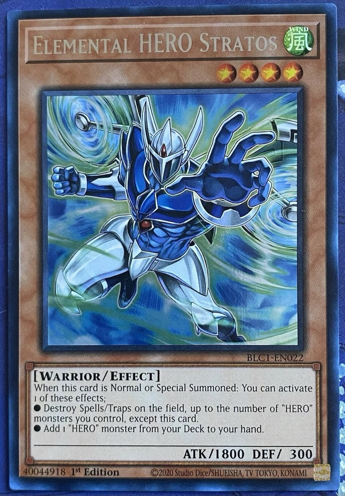 Yugioh Elemental Hero Stratos Ultra Rare NM 1st Edition Alternate Art BLC1-EN022 (Silver)...