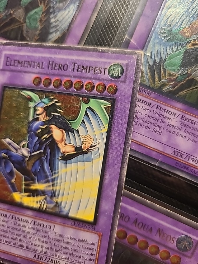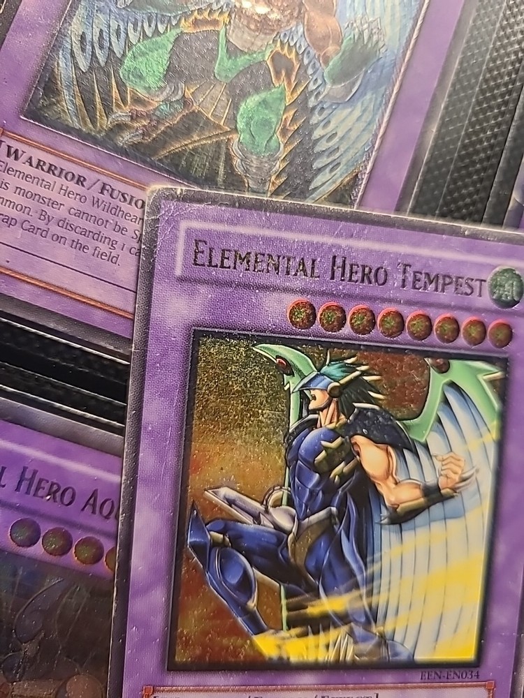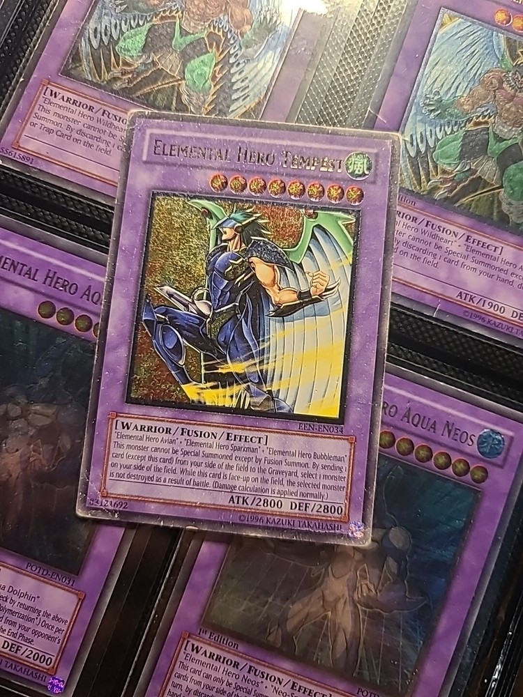 This Yu-Gi-Oh! TCG card, titled "Elemental Hero Tempest," is a highly sought after collectible for fans of the game and the Yu-Gi-Oh! character family. The card is a 1st Edition, Ultimate Rare foil finish, manufactured by Konami and part of the Elemental Energy set. The card is in English language and is suitable for collectors of all levels.