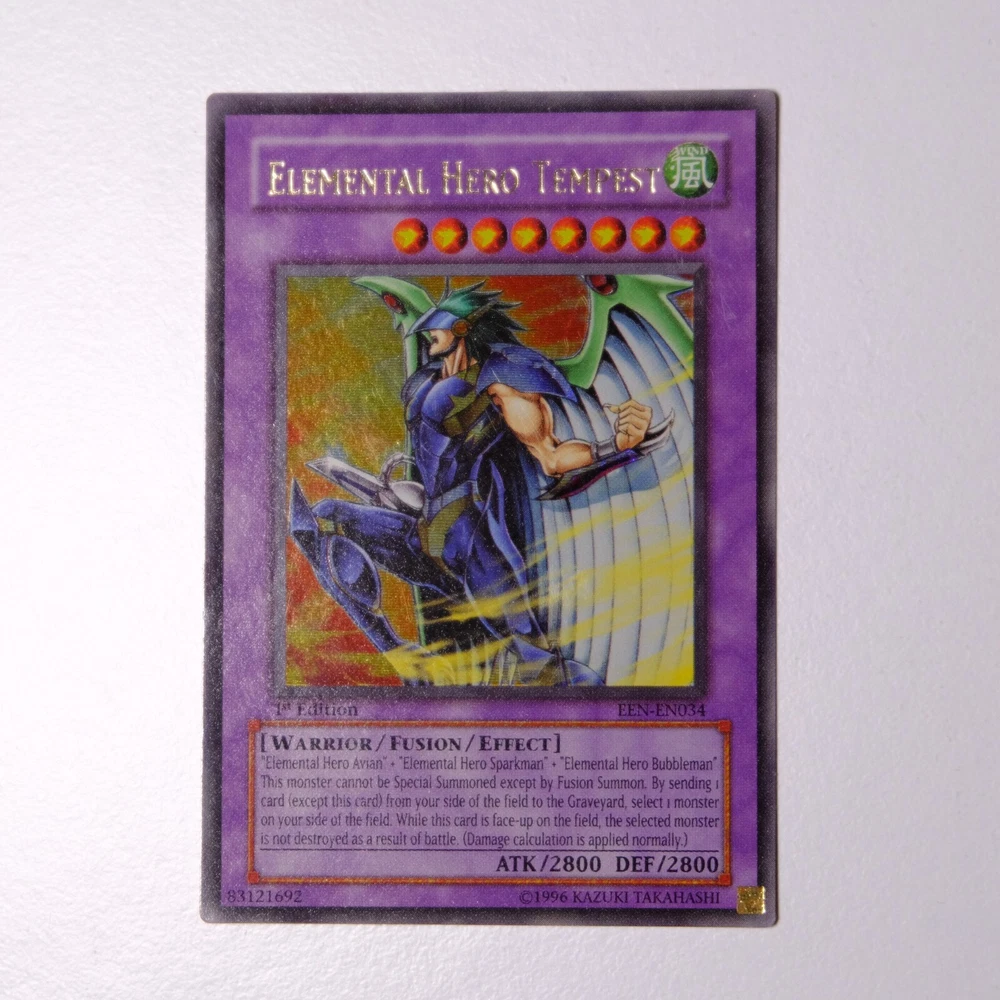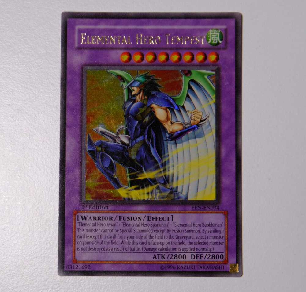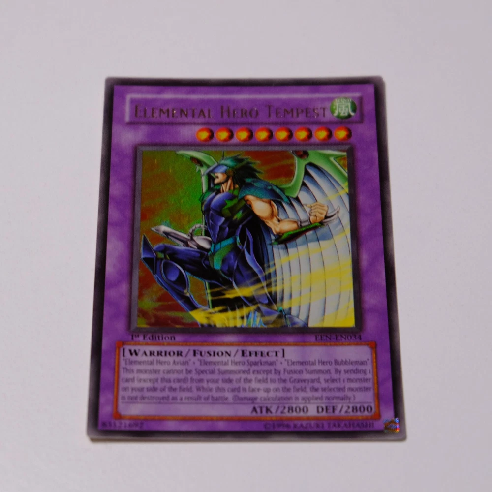 Yu-Gi-Oh! GX Elemental Hero Tempest - EEN-EN034 - Ultra Rare - 1st Edition - Near Mint - 2005 Near Mint copy of Elemental Hero Tempest from the 2005 Enemy of Justice (EEN) set, Ultra Rare, 1st Edition (EEN-EN034). This is a must-have for Elemental Hero fans and collectors. This card has never been touched, kept in a sleeve and folder, and never used in play. ✨ Condition: Near Mint (Never Played, Never Touched!) ✨ Language: English ✨ Edition: 1st Edition ✨ Rarity: Ultra Rare ✨ Set: Enemy of Justice (EEN) ✨ Year: 2005 💎 Card Condition Details: ✔️ Carefully stored in a sleeve and binder ✔️ No creases, bends, or scratches ✔️ Sharp edges, vibrant colors, and a clean surface Message me without any hesitation before purchase for postage enquiries or card enquires or anything. Get your game on! 😉🫵