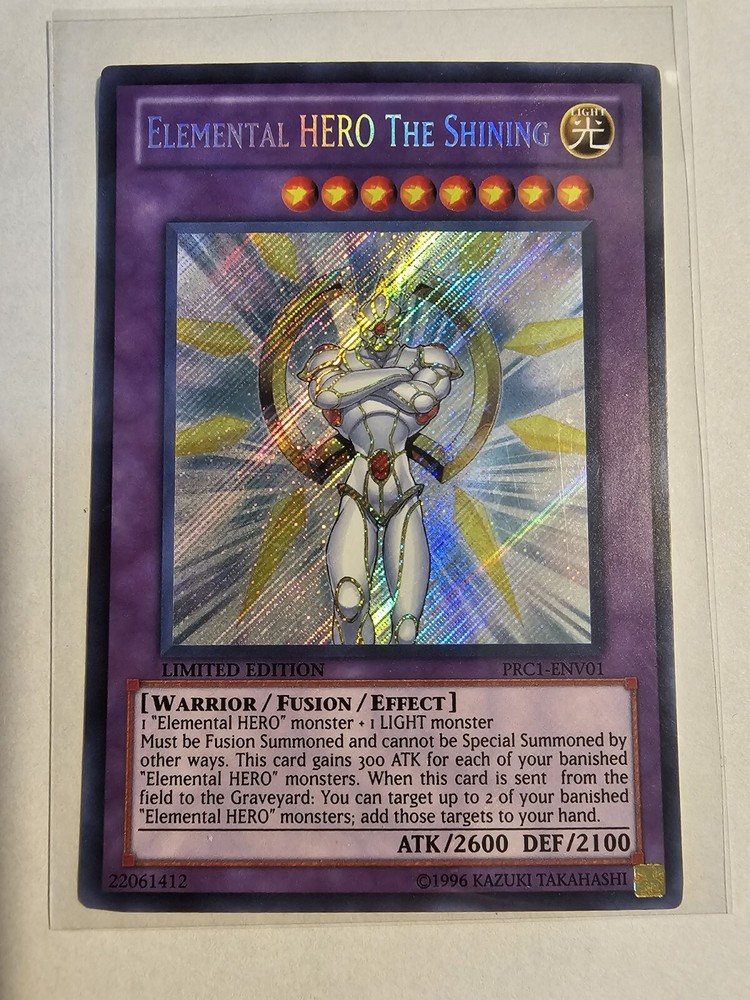 Yugioh! Elemental Hero The Shinning PRC1-ENV01 limited edition Near Mint Comes in a top loader.