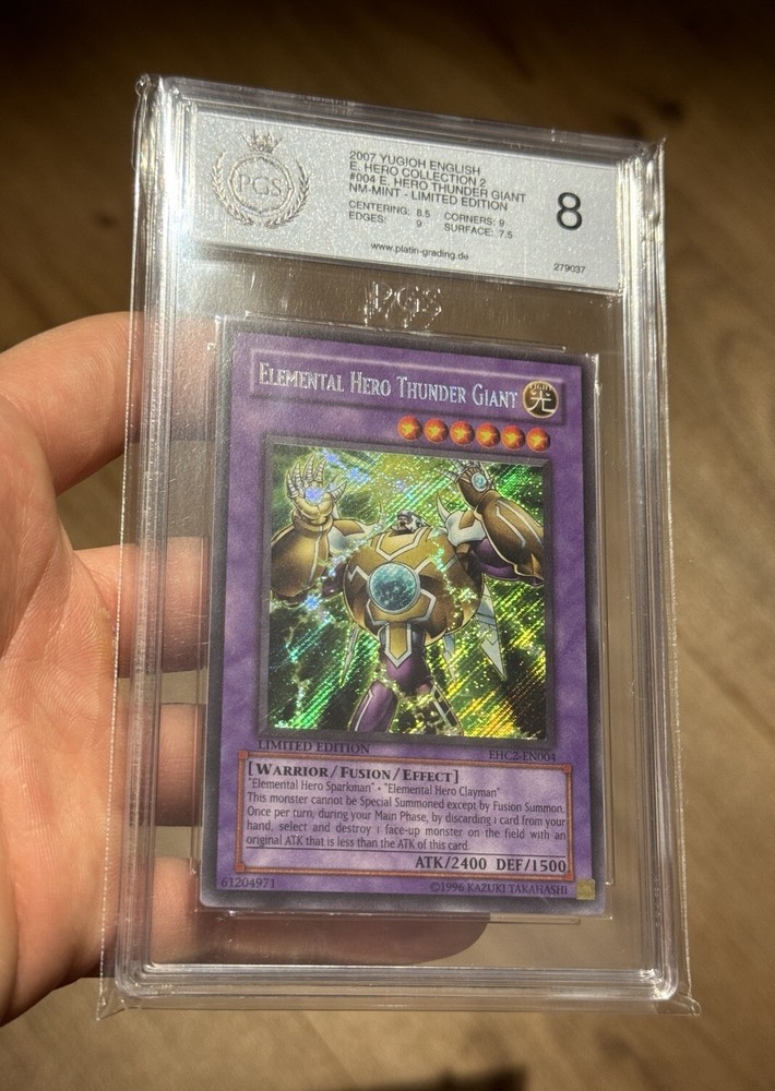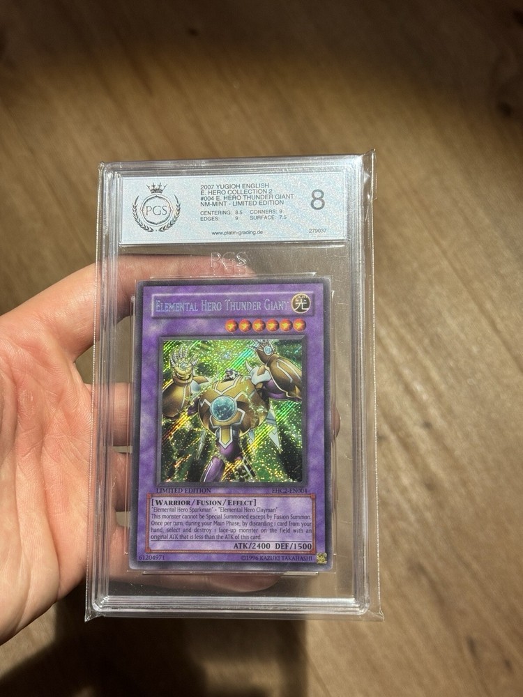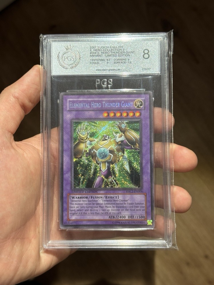 This Yugioh Elemental Hero Thunder Giant card is a fantastic addition to any collector’s set! The PSA PGS 8 grade ensures top condition, and the card looks just as sharp as in the photos. Seller was responsive and helpful—great experience overall. Highly recommend for serious collectors!