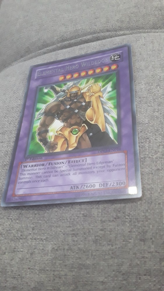 Yugioh Elemental Hero Wildedge Rare DP03-EN010 1st Ed Lightly Played. Condition is Ungraded. Shipped with USPS First Class Mail Letter.