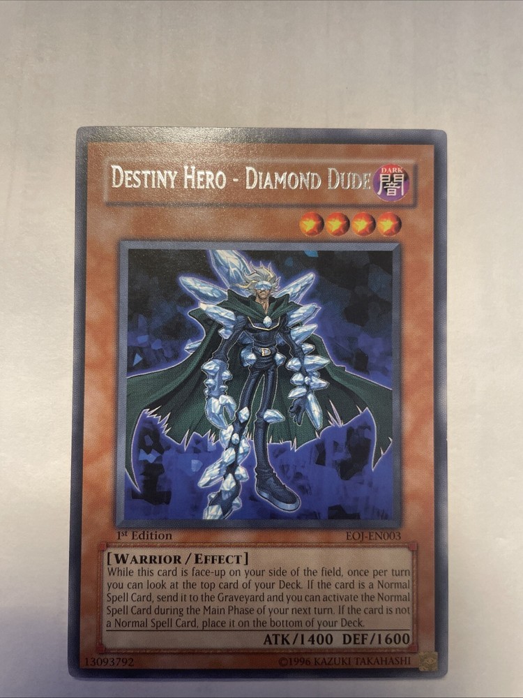 Yugioh Enemy Of Justice DESTINY HERO - DIAMOND DUDE 1st Ed EOJ-EN003 NM We bundle shipping! Message if interested in other items to keep shipping costs low.