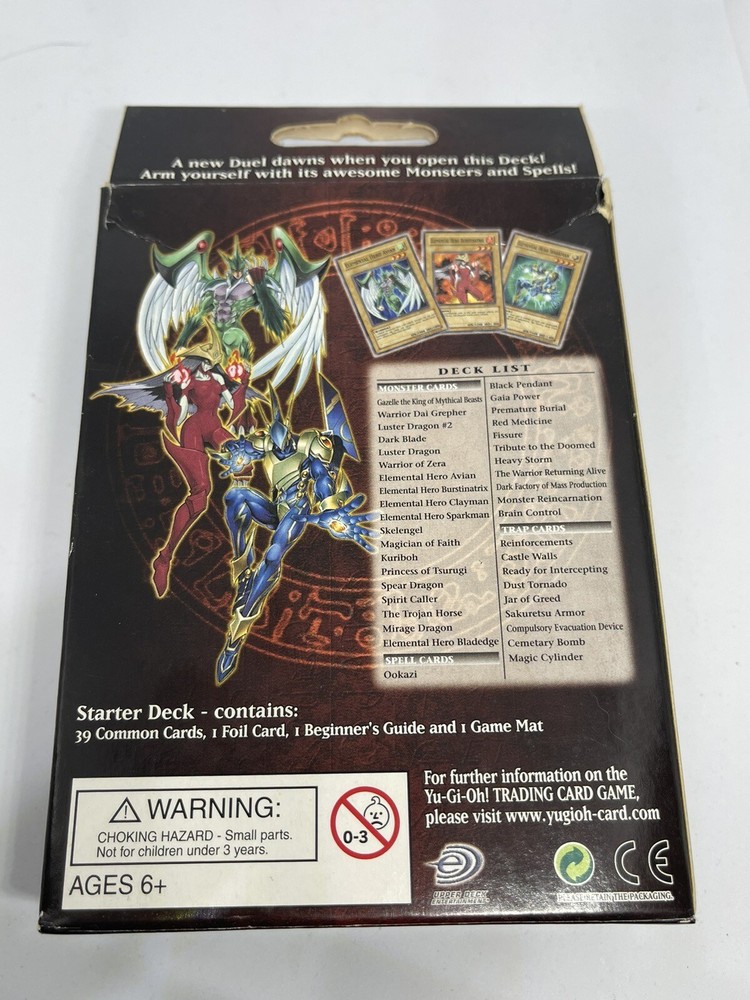 For sale is one Yu-Gi-Oh! GX Elemental Hero Starter Deck The deck is US English, 1st Edition and contains ready to play 40 card theme deck, Rule book and game mat. Deck is factory sealed and comes from a smoker free home. It is new however it may show evidence of storage/shelf wear. This does not, however, affect the product in any way. For further item detail please refer to picture(s) provided of the actual item(s) you will be purchasing. Item will be shipped within 3 business days of cleared payment. International orders are shipped via eBay’s International Shipping Program. Buyer is responsible for any additional costs. We are located on Guam, which is a considerable distance from the continental US. Item will be shipped Priority Mail but please consider a little leeway for shipping time before posting negative feedback. Hawaii can be a bottleneck in shipping items to the mainland. Feel free to contact me if you have any questions.