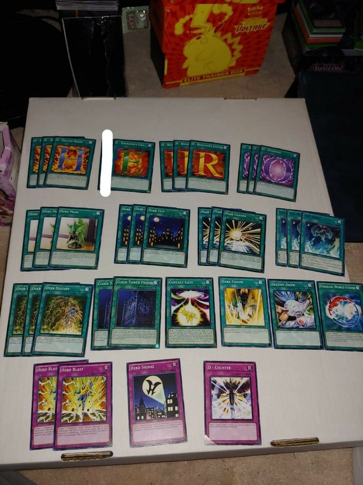 Yugioh Great Elemental Hero Fusion Deck Core Condition is "New" Up for sale is a 95 Card Elemental Hero Collection Comes with a few foil fusions and phat stack of the rest 90+ Please refernece the photos. Want an Elemental Hero Deck ?! I got a phat one right here ready to be built and mashed into a playing deck.