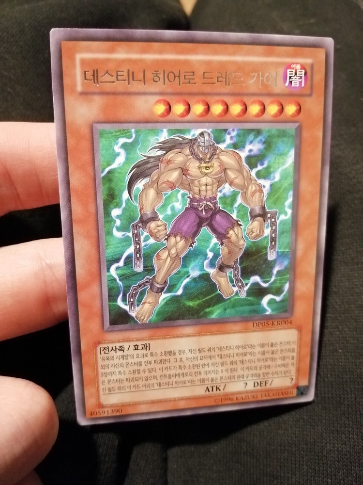 Yugioh Korean Card Destiny Hero Dreadmaster DP05-KR004 Rare NM Condizioni NM Per altre foto o altre informazioni sono a disposizione For other photos or info please ask...