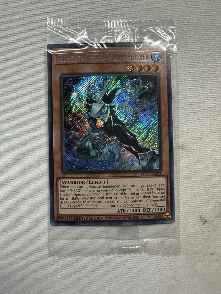 Yugioh LDS3-EN103 Elemental Hero Liquid Soldier Secret Rare Sealed. Still sealed