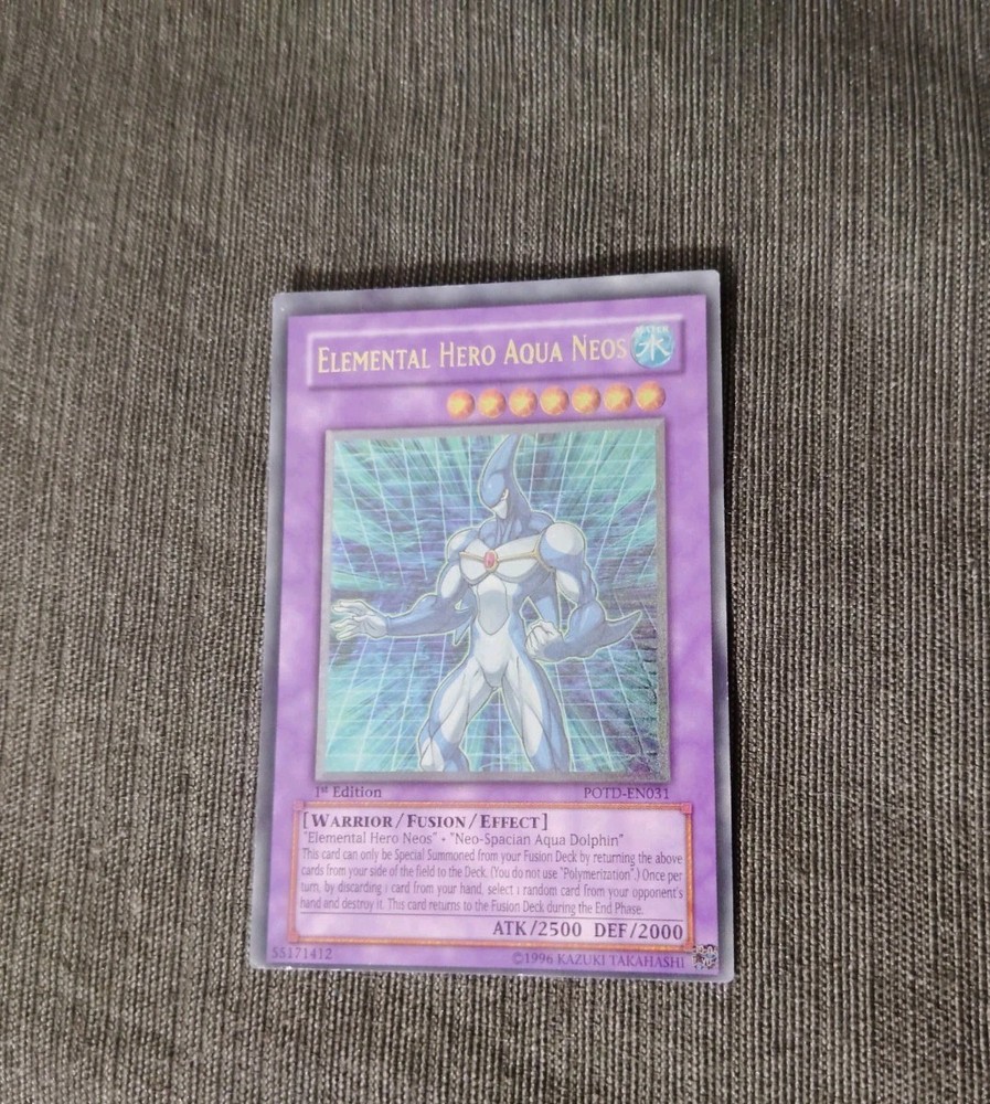 You are bidding on: Yugioh! Elemental Hero Aqua Neos - POTD-EN031 - Ultra Rare - 1st Edition Condition: Condition: Lightly Played | Language: English All photos are stock, unless mentioned otherwise. Card edition, rarity, etc. are listed in the title and description. Cards are in English unless otherwise stated in title or description. Items will be shipped within 1 business day upon receiving cleared payment. We ship Monday through Saturday in order to get the item(s) to you as quickly as possible Before leaving neutral or negative feedback, please contact us beforehand so we can discuss the issue. Feel free to message me with any questions you have regarding this auction or my policies. Shipping Options: USPS Mail - $0.99 Orders $29.99 (exc. sales tax) and under will be sent in a white envelope in a card saver + soft sleeve using eBay's Standard Envelope tracking service. Orders $30.00 (exc. sales tax) and over will be sent with free USPS tracking information w/ toploader + soft sleeve. Priority Mail - $9.99 2-3 Day shipping Orders will be shipped in a flat rate envelope in a toploader + soft sleeve. Priority Express Mail - $29.99 1-2 Day shipping Orders will be shipped in a flate rate envelope in a toploader + soft sleeve. *All orders over $100 will be sent with free insurance. All orders over $250 will be sent with free insurance and signature confirmation.* Card Grading: Near Mint (NM) - Cards with this grade will show minimal to no wear from shuffling, play or handling and can have a nearly unmarked surface, crisp corners and unblemished edges outside of a few minimal flaws. Holographic cards are more scrutinized than non-holo cards. Lightly Played (LP) - Cards with this grade may have a few dings, light playwear and/or edgewear. A few surface scratches are acceptable. A crease or bend is acceptable if it is less than approximately 1/2 inch in size and is only visible on one side. Moderately Played (MP) - Cards with this grade may have dings, playwear and/or edgwear, 1 or 2 creases or bends that do not go through the length of the card. Cards may have a 1 or 2 deep scratches. Heavily Played (HP) - Cards with this grade may have dings, playwear and/or edgwear, creases or bends that may go the length of the card, markings and/or coloring, tears on the edges. Despite being the lowest of grading, these cards are still tournament legal. If you receive a card not in the stated condition, please contact us to return the item for a full refund. Thank you for buying.