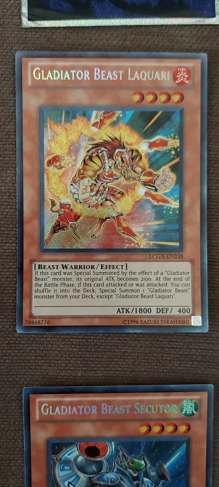 Yugioh! Legendary Collection 2 Lot Number 2 of the LCGX series pack. Lot one is on my profile if you want to buy both of them I have them on here. Here is the next 8 cards from that series: Lot 2 LCGX series (Super Rare/Unlimited)(Near Mint/L) Destiny HERO - Dreadmaster LCGX-EN125 ( Ultra Rare/Unlimited)(Near Mint ) Rainbow Dark Dragon LCGX-EN243 (Secret Rare/Unlimited)(Near Mint) Gladiator Beast Laquari LCGX-EN238 (Secret Rare/Umlimited)(Near Mint) Gladiator Beast Secutor LCGX-EN240 ( Super Rare/Unlimited)(Near Mint/L ) Rainbow Neos LCGX-EN074 (meaning between near mint and lightly played( Note: more on the near mint side) ( Ultra Rare/Unlimited)(Near Mint ) Crystal Tree LCGX-EN170 ( Rare/Unlimited)(Near Mint ) D - Time LCGX-EN149 ( Rare/Unlimited)(Near Mint ) Rose Bud LCGX-EN105