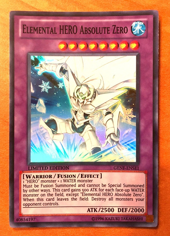 Elemental HERO Absolute Zero Limited Edition Super Rare from the 2011 Generation Force set for sale. Card is shipped in a protective sleeve. GENF-ENSE1. Contact Information: I can be contacted at any time through eBay messages if you have any questions, comments, or product requests. Payment: I also accept Paypal and EMT (Canada Only) for payments. Please contact me for details.
