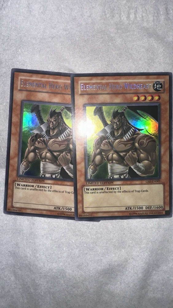 You're looking to buy misprint copy of: Card: Elemental Hero Wildheart (wrong foiling, should be secret but super) Set: GSE-EN001 Rarity: should be secret but super with secret rare name Edition: limited Language: English Condition: MP