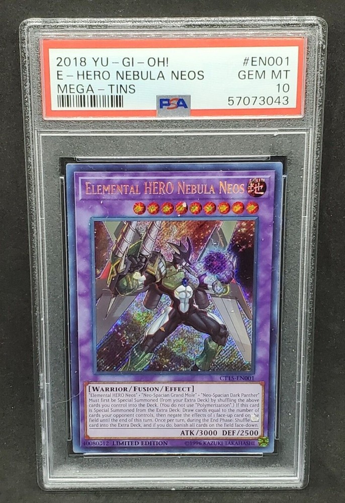 You are bidding on a Yugioh PSA 10 GEM MINT Elemental Hero Nebula Neos 1st Edition Secret Rare Card# CT15-EN001 !!! This card has been graded as GEM MINT - a perfect 10 - by PSA!!! An incredible addition to any collection! Shipping is FREE on this item in the United States! All PSA cards will be shipped in a padded envelope or appropriately sized padded box, with a graded card sleeve surrounding the PSA Case. For orders over $250, please be advised that signature confirmation is required. For any questions regarding shipping or otherwise, please contact us prior to purchase. Please allow 2-3 business days handling time. Make sure to check out our other listings for all of your favorite Trading Card Games! Thanks for shopping at Yeti Gaming!
