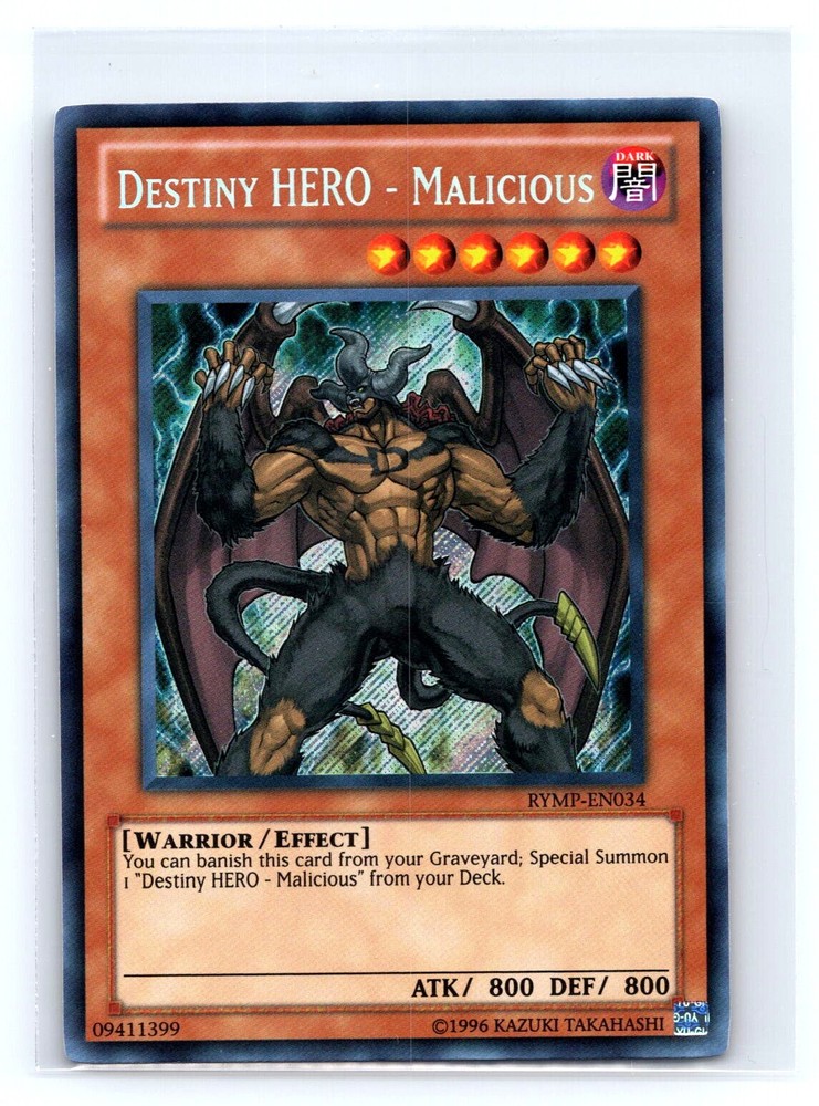 Yugioh Ra Yellow Mega Pack Destiny HERO - Malicious #RYMP-EN034 Secret Rare Thank you for your interest in this item. By bidding/purchasing this item you agree to eBay’s policies and agreements and agree to the following policy set forth below in this listing. If this listing is for a trading card, please see the bottom of this description for further information. Please do not fail to read the full description before purchasing. 1. PAYMENTS: On buy it now purchases, payment is required immediately. On any winning auction, you are expected to complete payment within a reasonable amount of time, eBay’s policy is set at a maximum of 4 days. If you fail to make a payment on a winning auction, your account will receive an unpaid strike. All payments must be made through eBay’s Payment System. At this time no other form of payment is being accepted. We do not accept payments outside of eBay’s payment system, please do not ask, you will be reported to eBay. If you fail to make a payment on an item, we reserve the right to block you from making or attempting to make future purchases from us. 2. CANCELLATIONS: We reserve the right to cancel any transactions from eBay members with multiple negative feedback, or that we deem is a risk to our business or a risk to the transaction, where we believe the buyer may try and defraud or deceive our business. We also may or may not honor a request for a cancellation from a buyer. Most times cancellations will not be granted because items are shipped fairly quickly after payment is made. 3. HANDLING TIME: Handling time is the same day if the payment is completed before 3PM CDT. 4. DOMESTIC SHIPPING (Within the United States): Shipping on most items is usually an economy class of shipping, such as FedEx SmartPost or USPS First Class Mail and takes approximately 5-12 business days after being shipped. Other shipping options are available, but do incur an extra fee, paid in part by you. This quicker shipping speed can be USPS Priority Mail 3-5 business days, FedEx Home/Ground 3-6 business days, and sometimes overnight or 1-day shipping. Please see the listing for the appropriate shipping options and what is available to you. Larger or heavier items may incur an extra shipping cost. Total delivery times can be expected from 4-8 business days on domestic deliveries in the United States. 5. INTERNATIONAL SHIPPING (Outside the United States): Shipping on many items we have on eBay that are going to countries outside the United States are usually shipped with eBay’s international shipping program. Depending on your world location in relationship to the USA, shipping times vary greatly. Canadian shipments usually are completed within 7-10 business days. European countries are usually 14-25 business days. The remainder of the world can take upwards of a month or longer. Please keep this in mind when ordering. If you need an expedited shipping service, please reach out to us. Do keep in mind that direct shipping to you internationally can be 3-4x the price of what the eBay international shipping rates are. We do not discount our rate because of import duties that your resident country may impose. If we do not offer eBay international shipping program, there is usually a restriction on the item or another reason we do not offer it on a specific product or to a specific world location. Please remember you are responsible for import duties, taxes, and any other fees that your country imposes on imported goods. 6. SIGNATURE / INSURANCE: We are required to have a direct signature on orders of more than $750 completed on eBay. There is no way around this, this is to protect our business, as well as you the buyer. We may require a signature on packages that are valued as little as $200 at our own discretion. We require this for our own protection and for the protection of the buyer. Most of the time if you are not available to accept a package that requires a signature, it can be forward to the Post Office, signed for online through Informed Delivery, or picked up from the Post Office after a delivery attempt. Please note that this is only on packages shipped via USPS. We also ship FedEx and UPS. Most of the time packages can be forwarded to a FedEx location or UPS store and can be done easily on their respective app or by calling their customer service and providing them with the tracking number. Packages over $500 will be fully insured for the entire value of the package. If the package is valued at less than $500 and you have a concern with delivery or have delivery issues in the past, please message us immediately after completing the payment, so we can insure the package. 7. RETURNED TO SENDER / UNDELIVERABLE PACKAGES: Shipments that are returned to sender because of incorrect addresses, entered in by you the buyer to eBay’s system, will have a refund applied minus the outbound shipping cost. This refund usually takes place the same business day or a day later, after the package is received back. Full refunds will not be given on orders where the buyers address is incorrect with eBay and the Post Office cannot properly forward. Please make note that if you have moved or changed addresses, that you make the update in eBay before you make any purchase. Once a purchase is made, the address cannot be changed on the seller’s end. It must be shipped to the address recorded with eBay. We WILL NOT change an address after the payment is completed. 8. RETURNS: Returns are most likely allowed within 30 days after you receive the item, UNLESS they are trading cards of any sort, including PSA/BGS/BCCG graded cards. If returns are allowed, they are to be made through eBay’s automatic return system. As the seller, we do not provide you directly a shipping label to return the item. You must follow the return an item on the actual purchased item. Once the 30-day window has elapsed, you will no longer be able to return the item. You must return the item in the original co