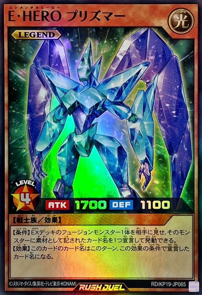 Item Title Description Yugioh Rush Duel RD/KP19-JP065 Elemental HERO Prisma Super Shipping Economy Shipping (No Tracking Japan Post) : $0 Standard Shipping (With Tracking Japan Post) : $4.00 Expedited Shipping (FedEx International Priority ): Additional fees International Buyers - Please Note: Import duties, taxes, and charges are not included in the item price or shipping cost. These charges are the buyer's responsibility. Please check with your country's customs office to determine what these additional costs will be prior to bidding or buying.